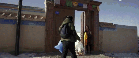 拜访藏族居民的家时,不时有人为他献上哈达。